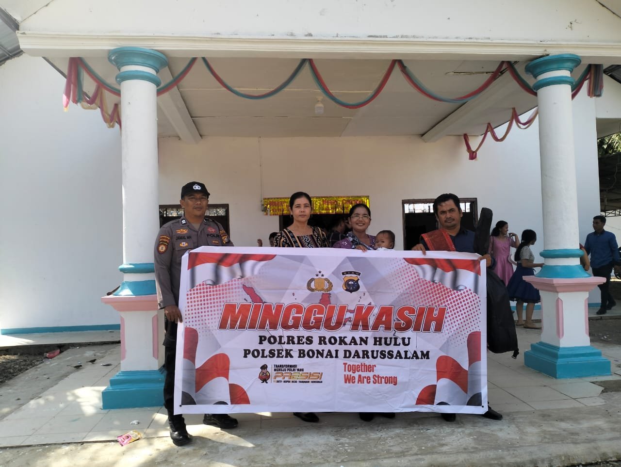Bonai Darussalam, Thilasia.id- Dalam rangka memberikan rasa aman dan nyaman kepada masyarakat yang sedang melaksanakan ibadah, Polsek Bonai Darussalam melaksanakan kegiatan patroli dan pengamanan di Gereja Oikumene PT. APSL (Andika Permata Sawit Lestari), Desa Sontang, Kecamatan Bonai Darussalam, Kabupaten Rokan Hulu.