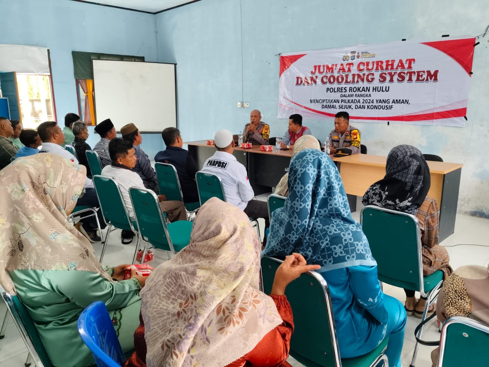 ROKAN HULU, Thilasia.id- Dalam Operasi Mantap Praja Lancang Kuning Tahun 2024 (OMP-LK24), Kasat Binmas Polres Rokan Hulu (Rohul), pimpin laksanakan kegiatan Cooling System bersama masyarakat dalam rangka ciptakan situasi Pilkada 2024 yg aman & kondusif, di Desa Tanjung Belit, Kec. Rambah Kab.Rokan Hulu, Jum’at (08/11/2024) pada pukul 11.30 WIB.