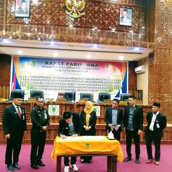 Rapat paripurna dihadiri Bupati Rohil Afrizal Sintong ,Sekda Fauzi Efrizal dan Kepala OPD dilingkungan Pemkab Rohil , Pada Kesempatan itu Banggar DPRD Darwis Syam, menyampaikan bahwa APBD Rokan Hilir Tahun 2025 adalah hasil pembahasan bersama dengah TAPD dan OPD.