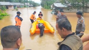 Rambah, Thilasia.id – Hujan deras yang mengguyur wilayah Rokan Hulu menyebabkan Sungai Pawan dan Sungai Kaiti meluap, mengakibatkan banjir di beberapa desa di Kecamatan Rambah, Kamis (27/2/2024). Sejumlah rumah warga dan fasilitas umum terendam air, namun situasi tetap aman dan terkendali berkat kesigapan aparat serta masyarakat setempat.