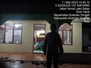 KUANTANSINGINGI, THILASIA.ID– Dalam upaya mempererat hubungan antara kepolisian dan masyarakat serta menjaga situasi keamanan dan ketertiban masyarakat (Kamtibmas) selama bulan suci Ramadhan, Bhabinkamtibmas Desa Jake, Polsek Kuantan Tengah, Bripka Tabra Suryandi, S.E., melaksanakan kegiatan Sholat Isya dan Tarawih Berjamaah di Mushola Nurul Huda, Desa Koto Taluk, Kecamatan Kuantan Tengah, Kabupaten Kuantan Singingi, pada Selasa (11/3/2025) malam.