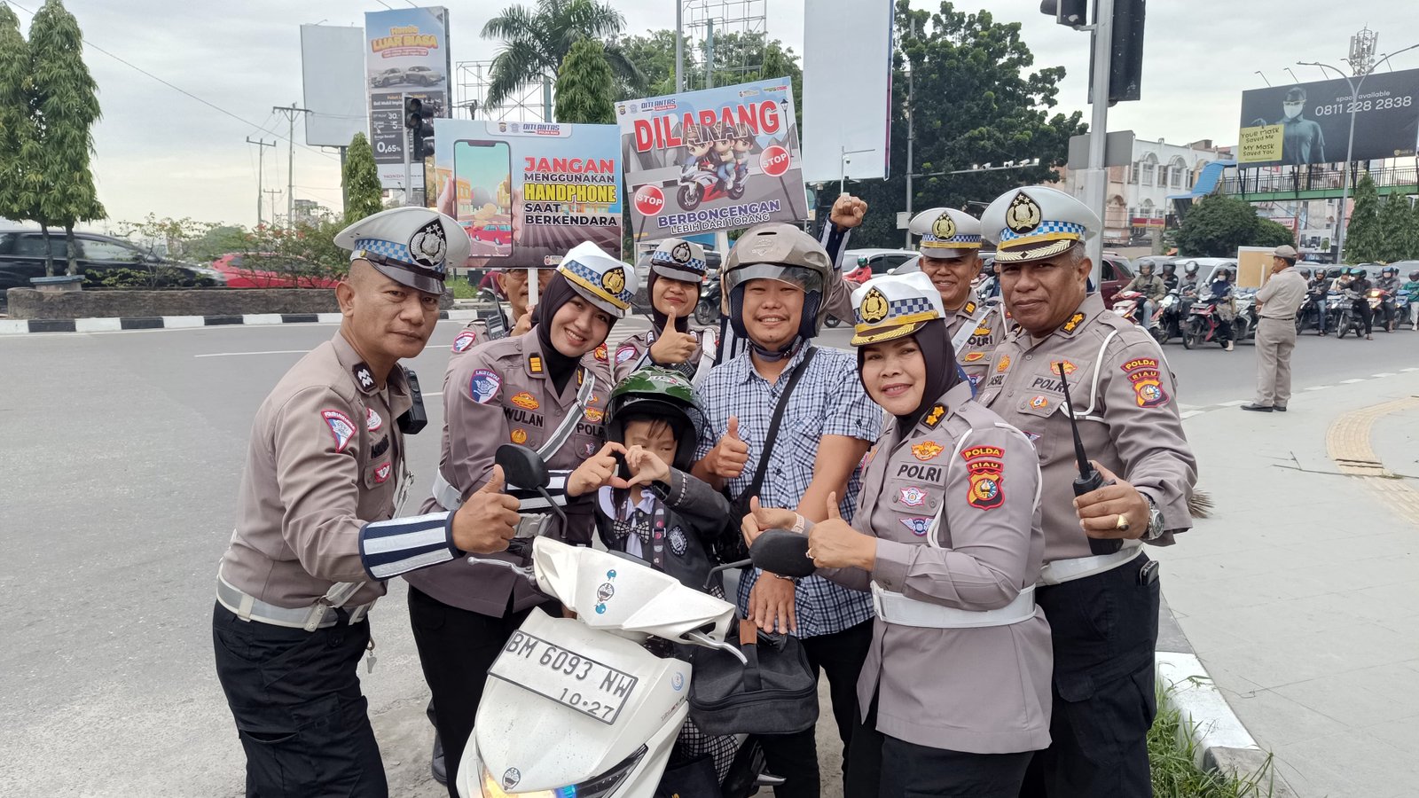 Dari keterangan Dirlantas Polda Riau Kombes Pol Taufiq Lukman Nurhidayat mengatakan.”Hari ini kita kembali melaksanakan kegiatan Kampanye Keselamatan Berlalu Lintas di Traffic Light Jl. Soekarno Hatta tepat di kawasan Mal Pekanbaru, kegiatan kita ini merupakan salah satu wujud komitmen kita yang selalu hadir di tengah-tengah masyarakat,” ujarnya.