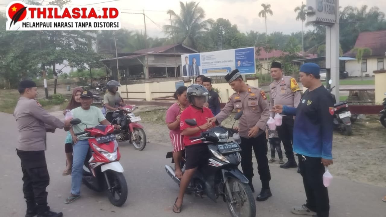 Kabun, Thilasia.id- Tertib Ramadhan Lancang Kuning 2025 ( TRLK-25) – Menyambut bulan suci Ramadhan dengan semangat kebersamaan dan kepedulian, Polsek Kabun bersama Komandan (Komunitas Mancing Danau) menggelar kegiatan sosial “Bertasbih” (Berbagi Takjil Sambil Himbauan). Kegiatan ini berlangsung di Jalan Lintas Kabun – Pasir Pengaraian, tepat di depan Mako Polsek Kabun, pada Jumat sore menjelang waktu berbuka puasa.(14/03/25)