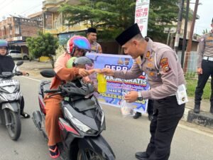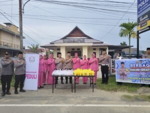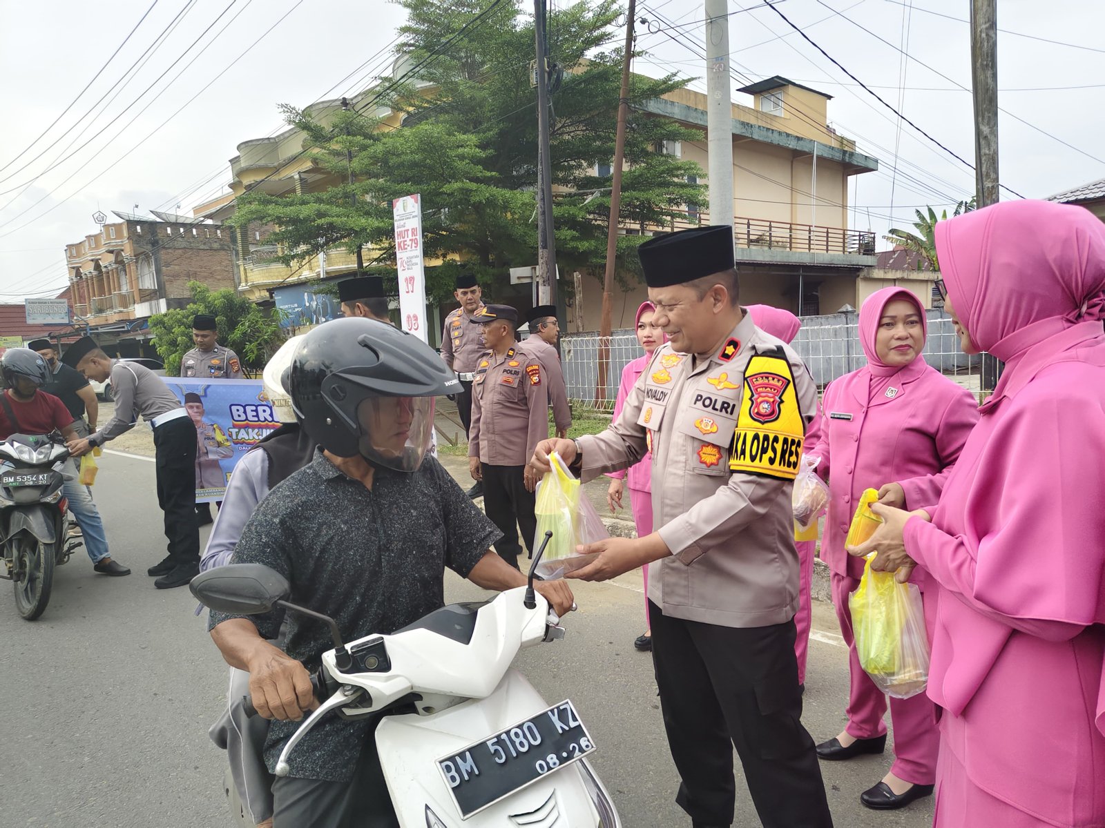 KUANTANSINGINGI, THILASIA.ID– Dalam semangat berbagi di bulan suci Ramadhan, Polres Kuantan Singingi (Kuansing) menggelar kegiatan pembagian takjil gratis bagi pengguna jalan pada Selasa (4/3/2025) sore. Kegiatan yang berlangsung sekitar pukul 16.30 WIB ini merupakan bagian dari Operasi Tertib Ramadhan Lancang Kuning (LK) 2025, yang bertujuan untuk meningkatkan kedisiplinan masyarakat serta mempererat silaturahmi antara kepolisian dan warga.