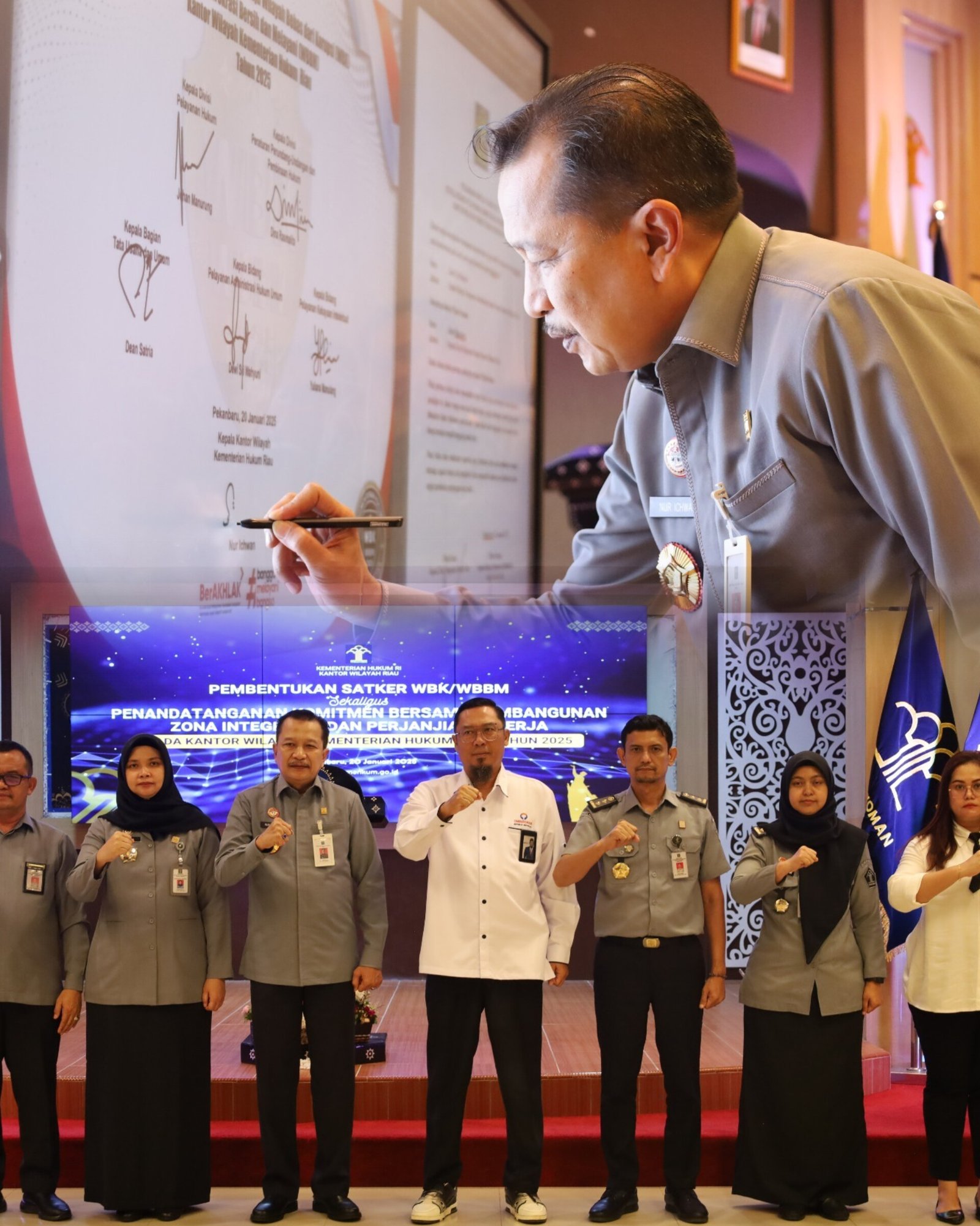 “Melalui penandatanganan komitmen bersama, kita memperbarui tekad kita untuk menjadi institusi yang bebas dari praktik-praktik korupsi dan mampu memberikan pelayanan terbaik kepada masyarakat. Mari kita jadikan momen ini sebagai titik awal yang lebih baik untuk mencapai target dan hasil yang kita harapkan pada tahun 2025,” ujar Kepala Kantor Wilayah Ditjen Pemasyarakatan Riau, Maizar dalam sambutannya.