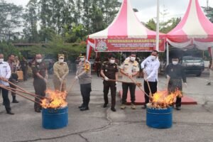 Kejari Rokan Hulu Musnahkan Barang Bukti Narkotika, Kalapas Pasir Pengaraian Turut Hadir.