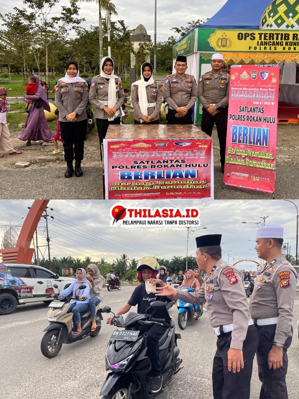 Rokan Hulu, Thilasia.id- Tertib Ramadhan Lancang Kuning 2025 (TRLK-25) – Dalam semangat berbagi dan mempererat silaturahmi dengan masyarakat, Satuan Lalu Lintas (Satlantas) Polres Rokan Hulu menggelar kegiatan pembagian takjil bertajuk “BERLIAN” (Berbagi Kemuliaan di Bulan Ramadhan). Kegiatan ini berlangsung di depan Pos Tertib Ramadhan, Kecamatan Rambah, Kabupaten Rokan Hulu, Riau, pada Jumat sore menjelang waktu berbuka puasa. (14/03/2025)
