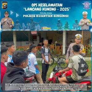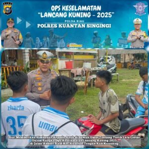 KUANTANSINGINGI, THILASIA.ID– Dalam upaya meningkatkan kesadaran masyarakat terhadap keselamatan berlalu lintas, Satuan Tugas (Satgas) Preemtif Polres Kuantan Singingi (Kuansing) melaksanakan sosialisasi Operasi Keselamatan Lancang Kuning (LK) 2025. Kegiatan ini berlangsung pada Sabtu (15/2/2025) sekitar pukul 11.00 WIB di Jalan Abdoer Rauf, Kecamatan Kuantan Tengah, Kabupaten Kuansing.