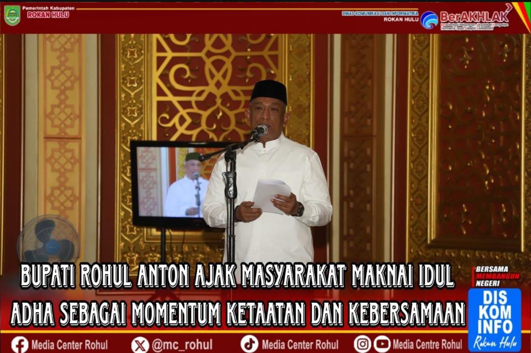 Dalam sambutannya Bupati Rohul Anton menyampaikan I’dul Adha merupakan salah satu hari raya besar bagi umat islam, dan memiliki makna mendalam tentang pengorbanan, ketaatan, dan keikhlasan.