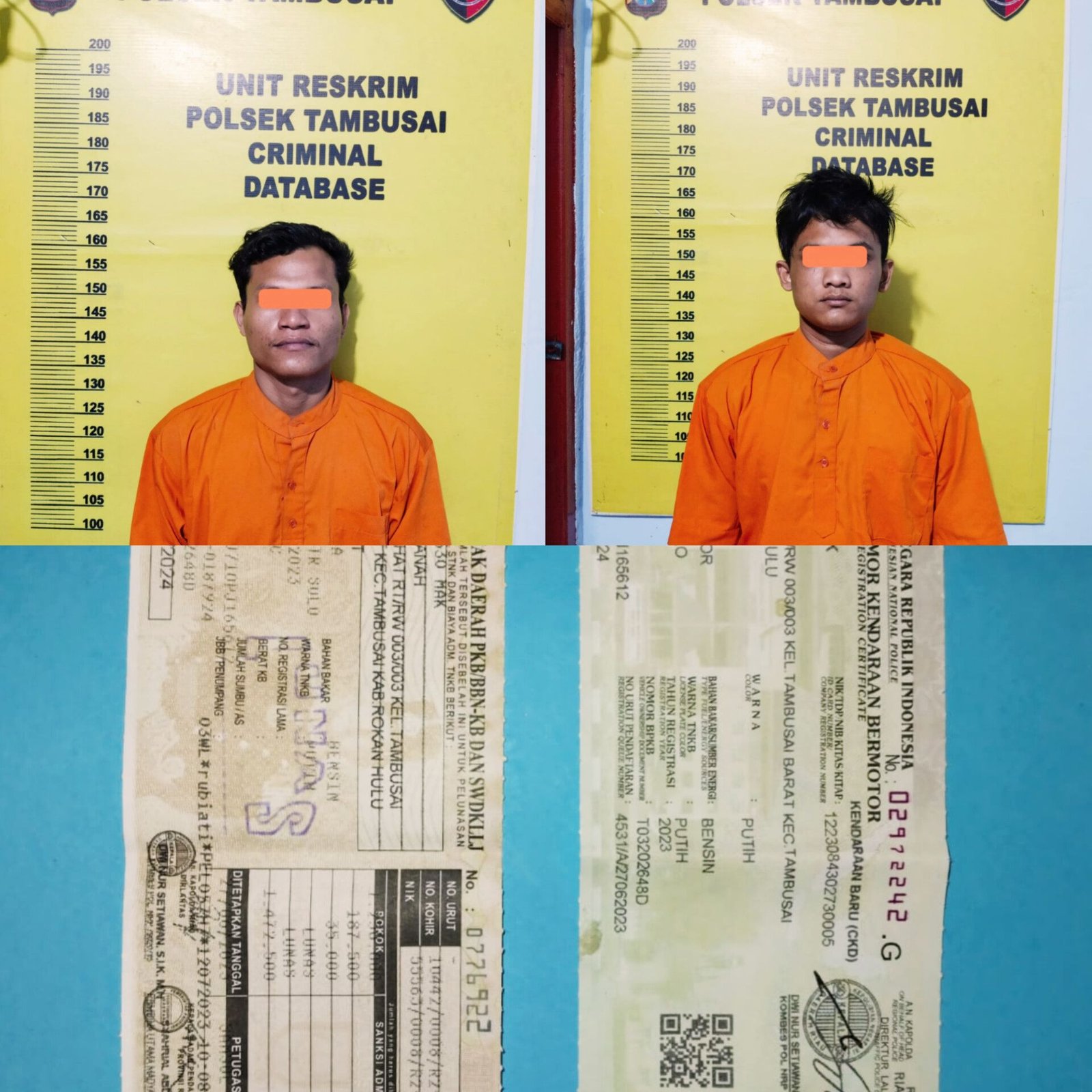 Dari hasil penyelidikan, polisi menemukan dua alat bukti yang cukup serta barang bukti STNK sepeda motor. Berdasarkan temuan ini, penyidik menetapkan keduanya sebagai tersangka dan menahan mereka di Rutan Polsek Tambusai. Para pelaku dijerat dengan Pasal 372 Jo Pasal 55 Undang-Undang Republik Indonesia Nomor 1 Tahun 1946 tentang Peraturan Hukum Pidana.