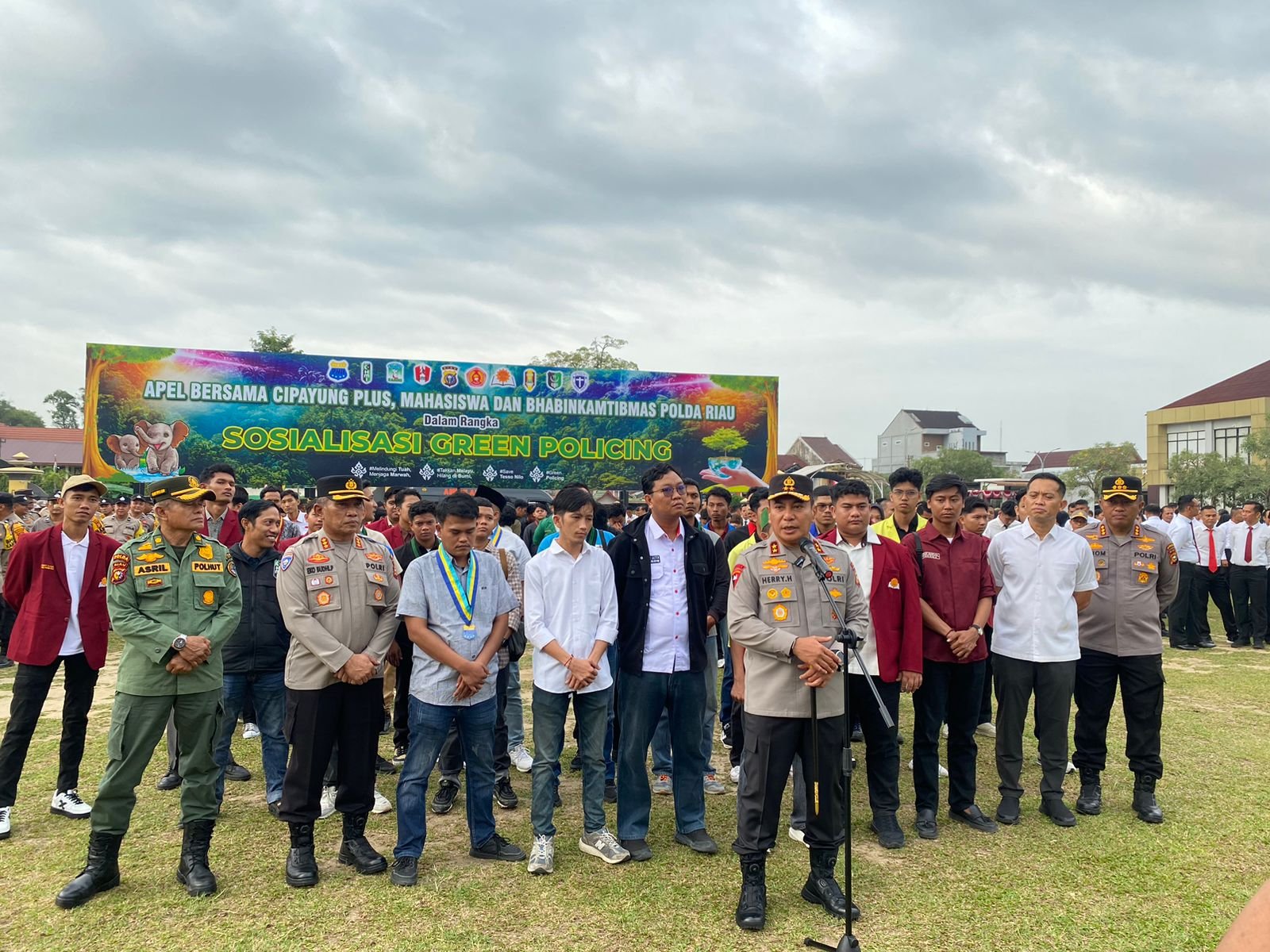Polda Riau Menggelar Apel Bersama Cipayung Plus, Mahasiswa dan Bhabinkamtibmas Dalam Program Sosialisasi Green Policing.