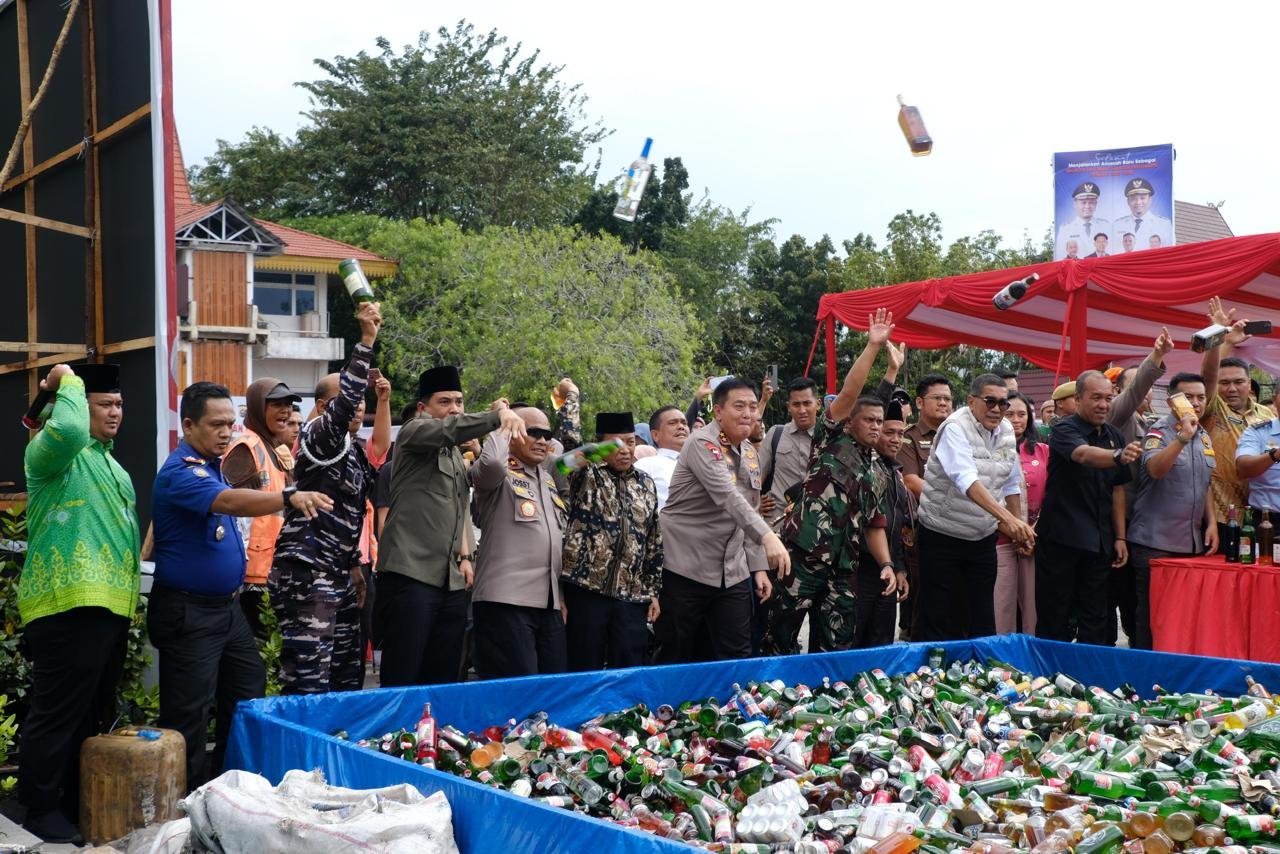Barang bukti 184,5 kilogram sabu sabu, 131.261 butir ekstasi, 15,6 kg ganja kering, 16.085 botol miras dan 1.030 unit knalpot bising (brong) dimusnahkan secara bersama-sama.