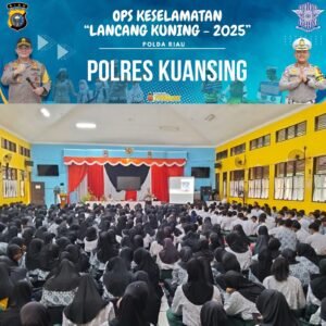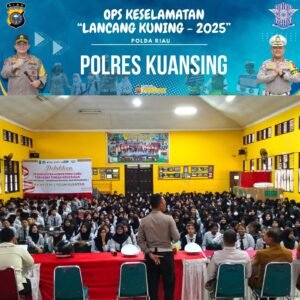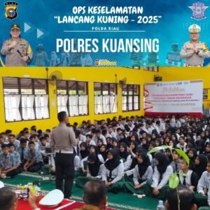 KUANTANSINGINGI, THILASIA.ID- Satgas Preemtif Operasi Keselamatan Lancang Kuning 2025 Polres Kuantan Singingi (Kuansing) melaksanakan kegiatan “Police Goes to School” di SMA Negeri 1 Teluk Kuantan pada Selasa (18/2/2025). Kegiatan ini bertujuan untuk memberikan edukasi dan sosialisasi keselamatan berlalu lintas kepada para siswa sebagai upaya pencegahan kecelakaan di jalan raya.