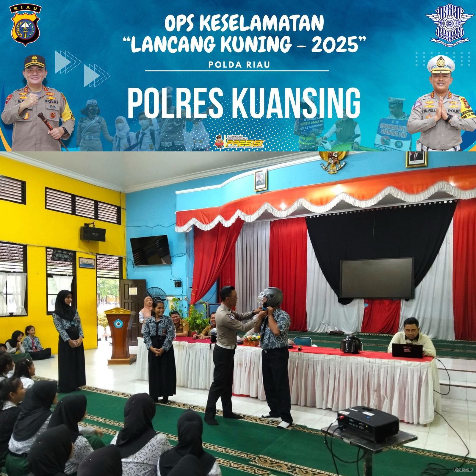 Dalam sosialisasi tersebut, petugas memberikan berbagai informasi terkait Operasi Keselamatan Lancang Kuning 2025 yang dilaksanakan Polres Kuansing mulai tanggal 10 hingga 23 Februari 2025. Selain itu, siswa-siswi juga diberikan pemahaman mengenai target operasi yang meliputi berbagai pelanggaran lalu lintas yang kerap terjadi, di antaranya Pengemudi atau pengendara kendaraan bermotor yang menggunakan ponsel saat berkendara, Pengemudi atau pengendara kendaraan bermotor yang masih di bawah umur, Pengemudi atau pengendara sepeda motor yang berboncengan lebih dari satu orang, Pengemudi atau pengendara sepeda motor yang tidak menggunakan helm Standar Nasional Indonesia (SNI) serta pengemudi atau pengendara kendaraan bermotor yang tidak menggunakan sabuk pengaman (safety belt), Pengemudi atau pengendara kendaraan bermotor yang dalam pengaruh atau mengonsumsi alkohol, Pengemudi atau pengendara kendaraan bermotor yang melawan arus, Pengemudi atau pengendara kendaraan bermotor yang melebihi batas kecepatan yang ditentukan.