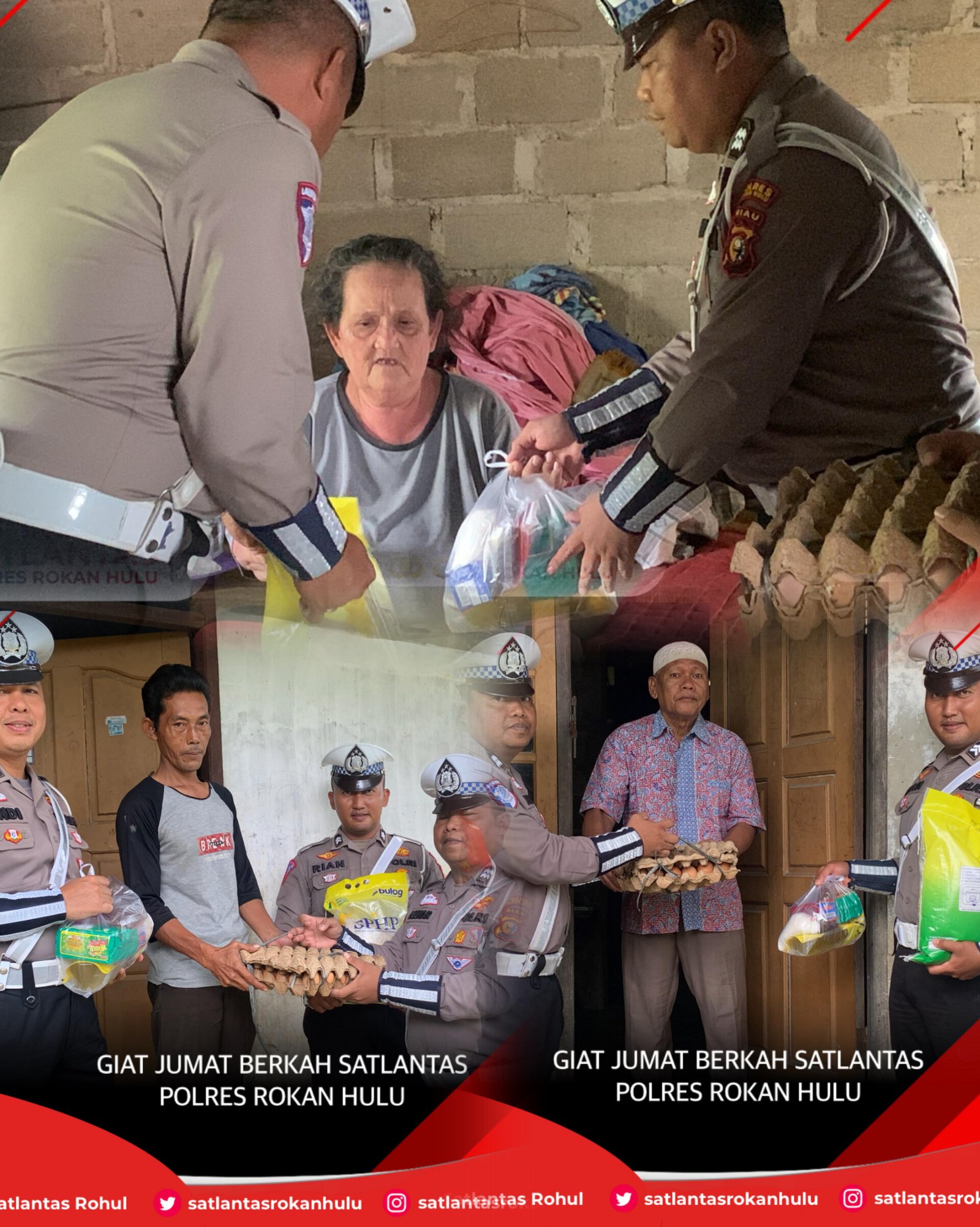 Dalam kegiatan ini, Kapolres Rokan Hulu, AKBP Budi Setiyono, SIK.,MH melalui Kasat Lantas, AKP Lily Sulfiani, SIK mengatakan personel Sat Lantas Polres Rokan Hulu membagikan paket sembako kepada masyarakat yang membutuhkan. Kegiatan ini diharapkan dapat membantu meringankan beban ekonomi masyarakat, khususnya bagi mereka yang berada dalam kondisi kurang mampu,” ujar Kasat Lantas.