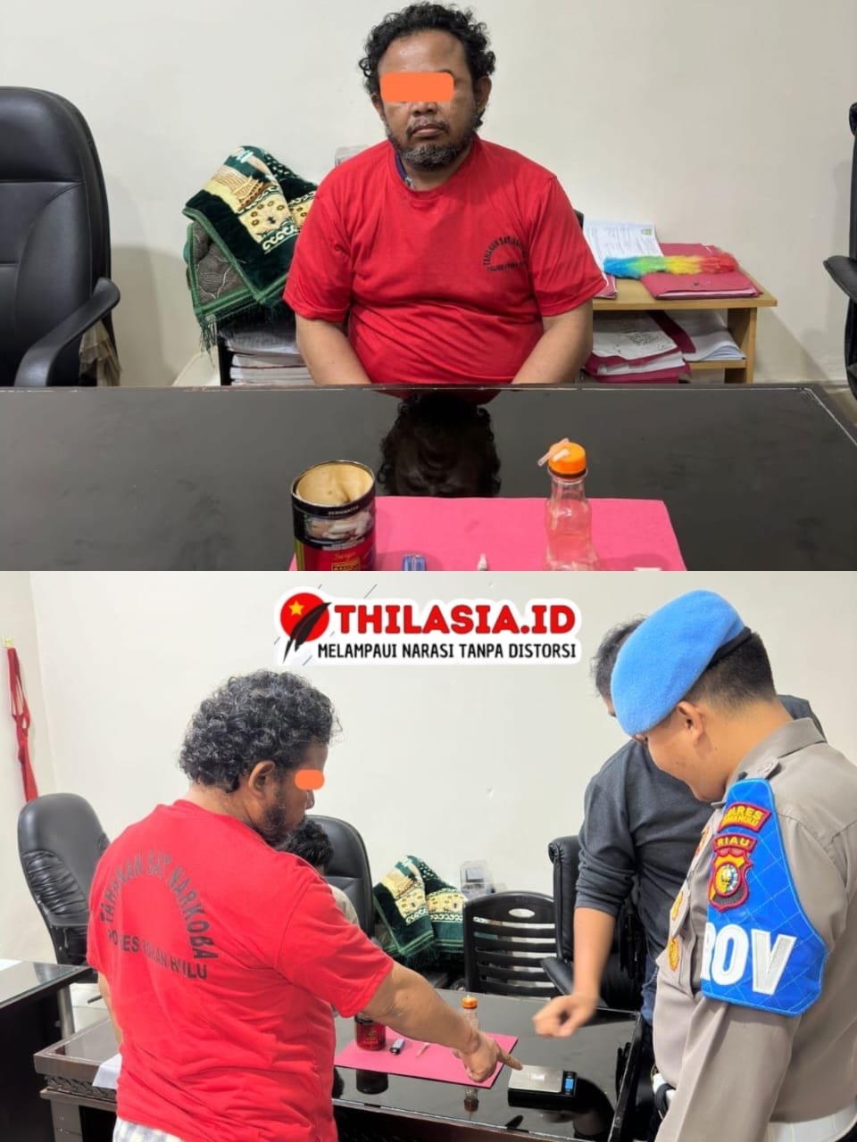 Tersangka yang diamankan adalah SH alias AD (51), warga Desa Rambah Tengah Utara, Kecamatan Rambah. Saat dilakukan penggeledahan, petugas menemukan sejumlah barang bukti berupa satu paket kecil narkotika jenis sabu yang dibungkus plastik klip bening dengan berat 0.20 gram, satu buah kaca pirek, satu set alat hisap (bong) dari botol plastik, satu buah mancis, dan satu tabung rokok merek Gudang Garam.