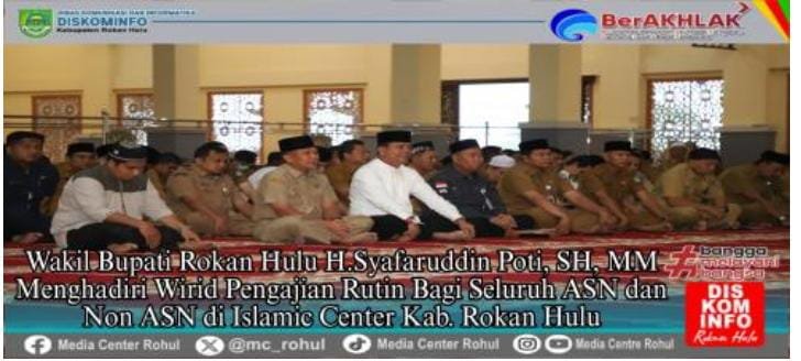 ROKAN HULU, Thilasia.id– Pemerintah Kabupaten (Pemkab) Rokan Hulu (Rohul) laksanakan agenda rutin Wirid Pengajian bagi seluruh Aparatur Sipil Negara (ASN) dan Non ASN di lingkungan Pemkab Rohul yang dilaksanakan di Masjid Agung Islamic Centre, Selasa (26/02/2025).