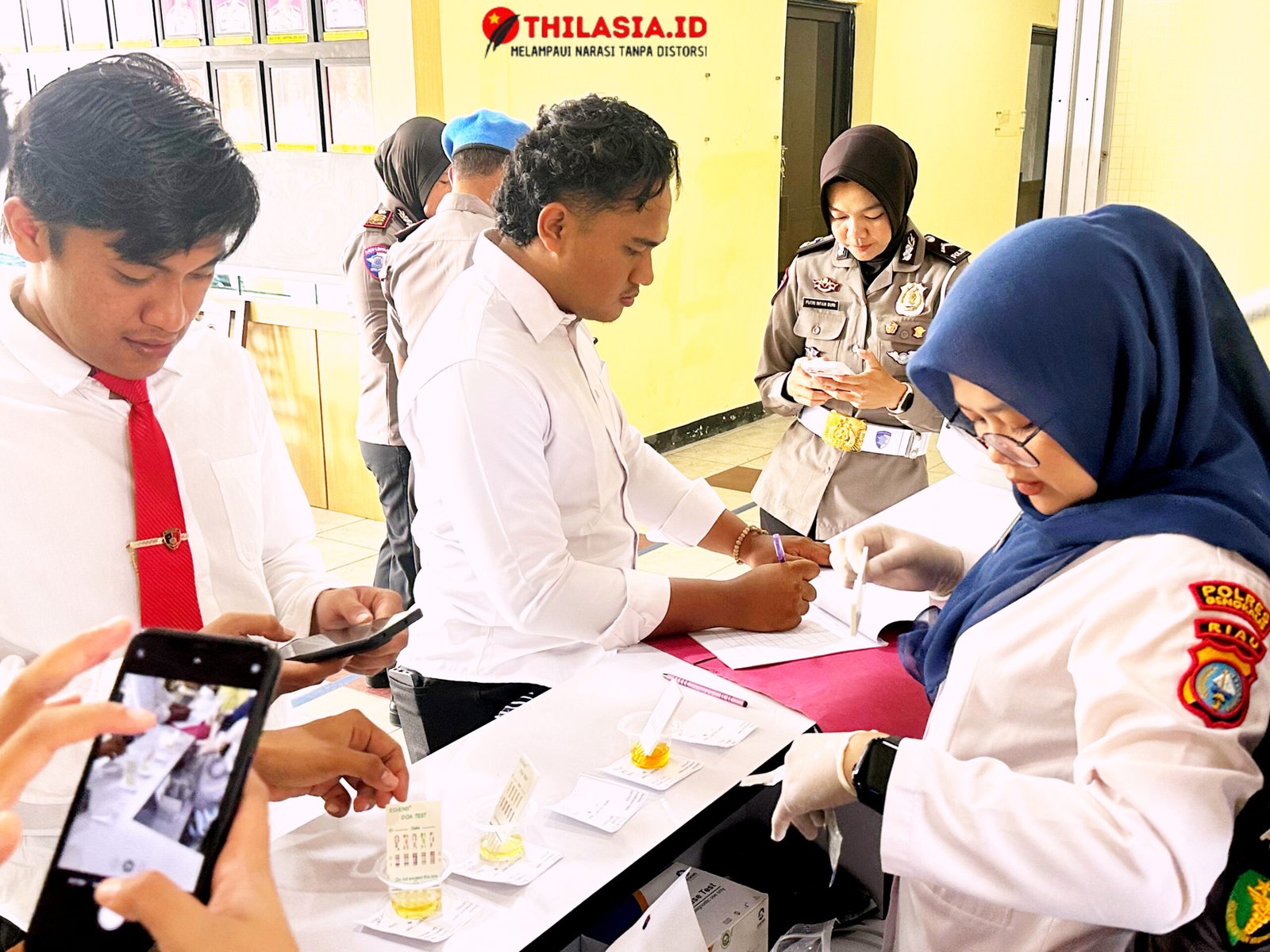 Pengecekan urine ini menyasar seluruh Pejabat Utama (PJU) Polres Kampar, Perwira Polres Kampar, Bintara Polres Kampar, hingga PNS Polres Kampar, dengan jumlah total 167 personel.