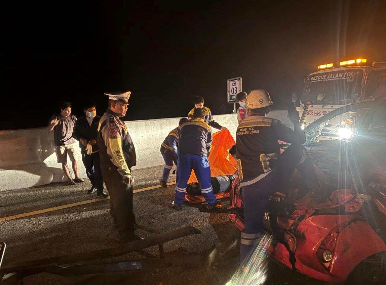 Gerak Cepat PJR Riau Tangani Laka Ganda di Tol Permai, Satu Korban Meninggal Dunia